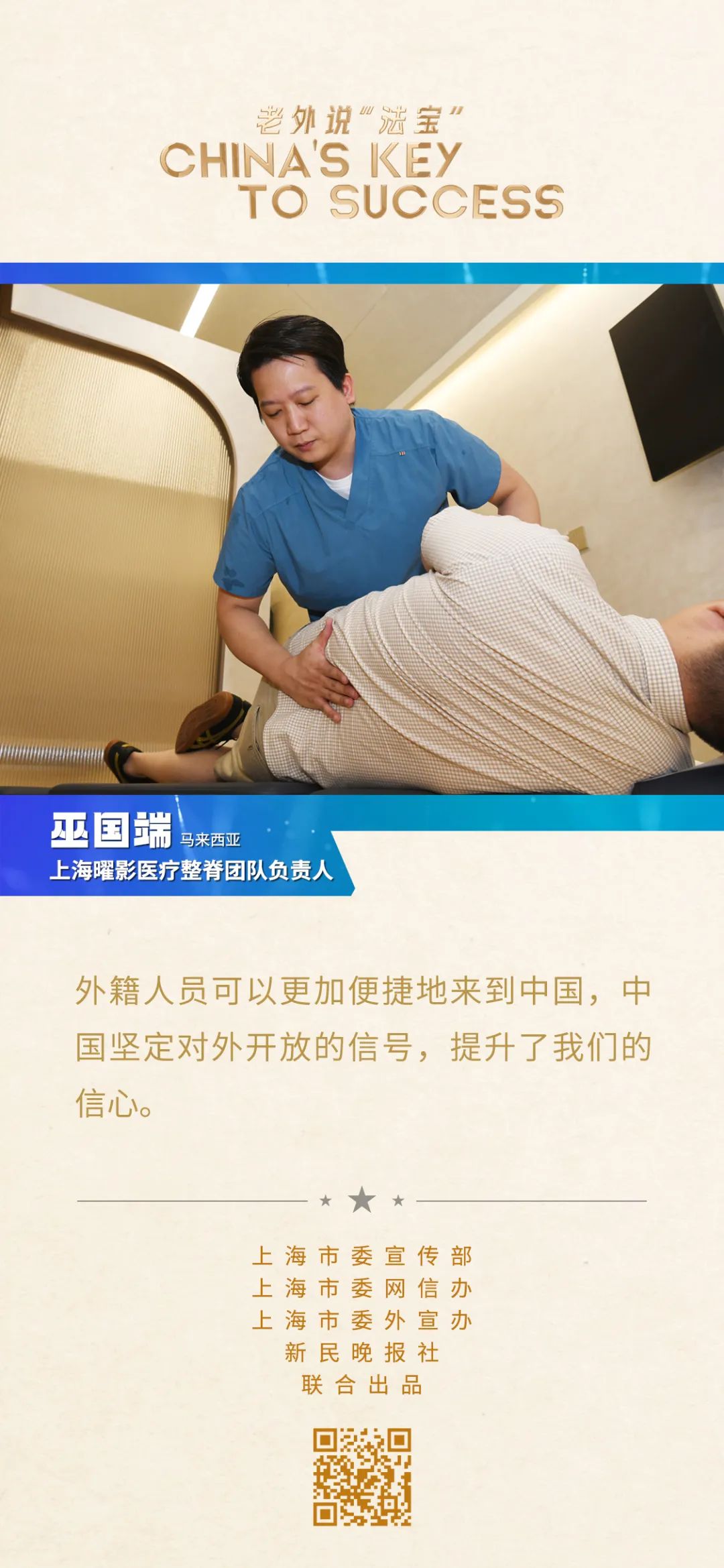 馬來西亞人巫國端是上海曜影醫(yī)療整脊團隊負(fù)責(zé)人。2014年,他只身來到上海從事醫(yī)療工作,今年是他在這座城市的第十個年頭。