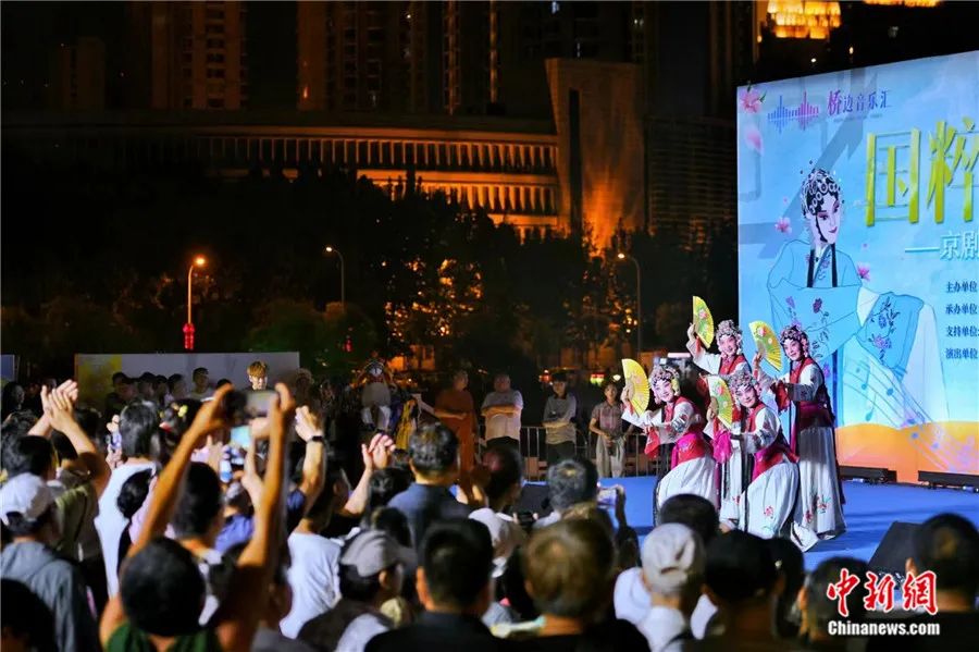6月8日晚,“‘橋’見海河,邂逅浪漫”——橋邊音樂匯第二季“國粹芳華”京劇專場演出在天津海河畔舉行,吸引了許多市民及游客感受國粹魅力。中新社記者 佟郁 攝
