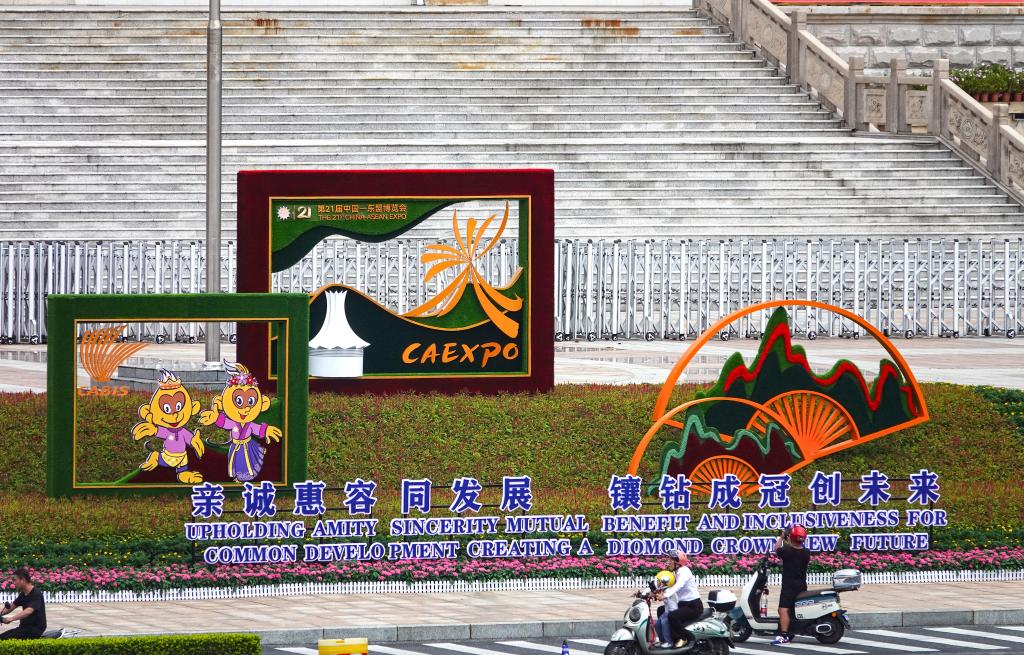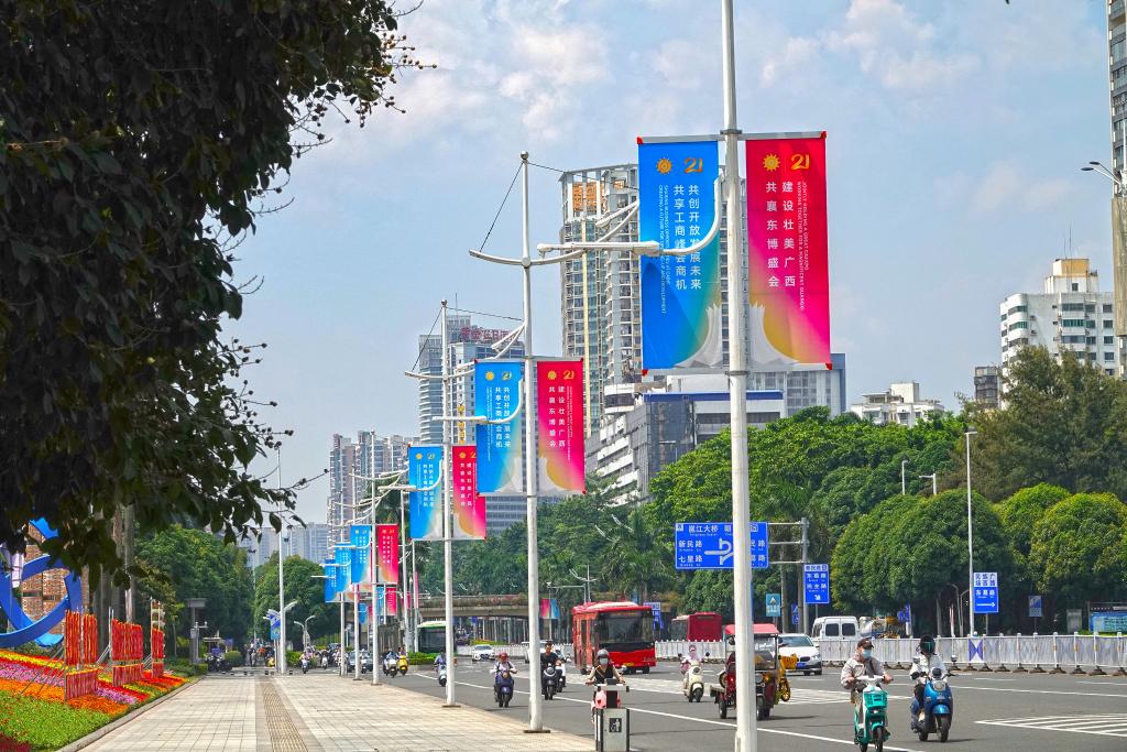 行走在南寧街頭,可見各式東博會(huì)和峰會(huì)的元素。今年的盛會(huì)以“親誠惠容同發(fā)展,鑲鉆成冠創(chuàng)未來”為主題,會(huì)期持續(xù)至28日,展覽規(guī)模近20萬平方米,參展企業(yè)超3000家。