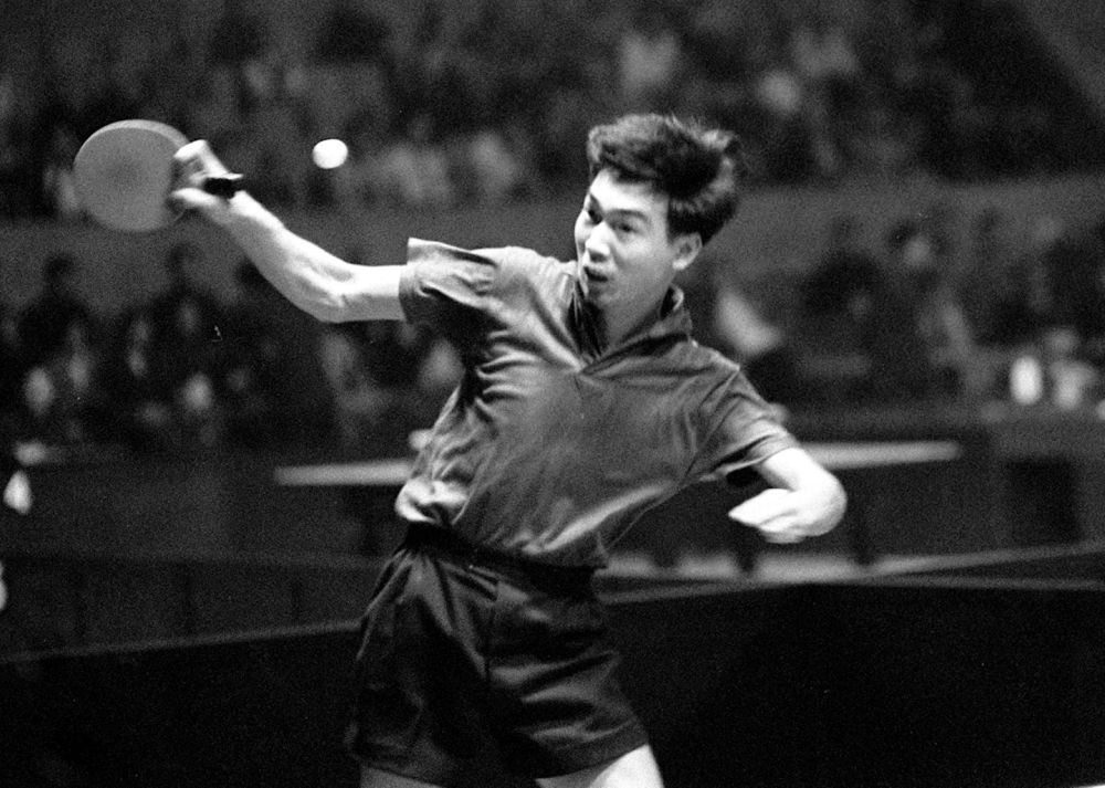 這是1961年4月11日,中國選手張燮林在第26屆世界乒乓球錦標(biāo)賽單項比賽中。新華社記者 鄒健東 攝