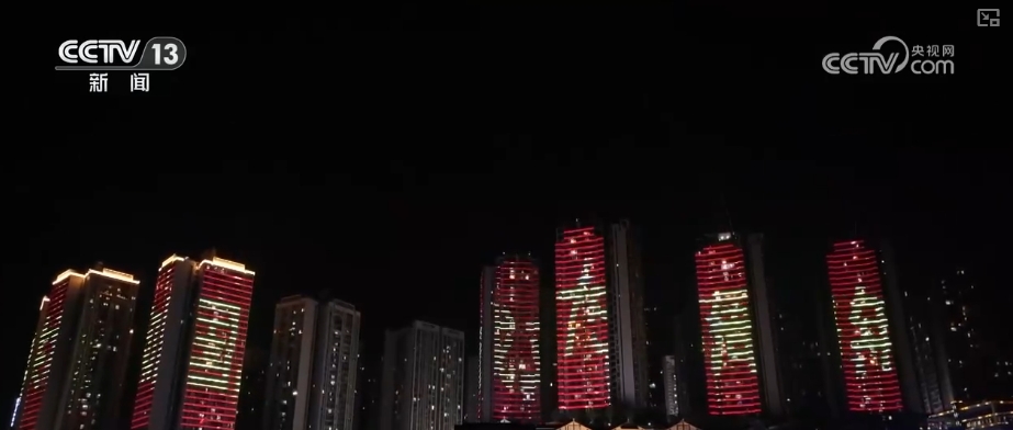 燈光秀閃耀夜空 營造喜慶節(jié)日氣氛