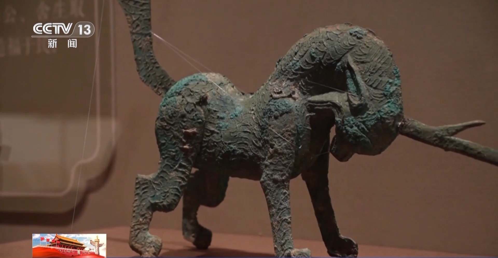 在展覽中,還有各種以物喻廉的寶貝。圖中的文物可不是獨(dú)角獸,是一只2000歲的漢代獬豸。獬豸這種傳說中的神獸,執(zhí)法公正嚴(yán)明,永遠(yuǎn)會(huì)用長(zhǎng)長(zhǎng)的角對(duì)準(zhǔn)犯罪的一方。另外,中國(guó)人是什么時(shí)候開始思考“廉潔”的?這就要問一件西周重器了。