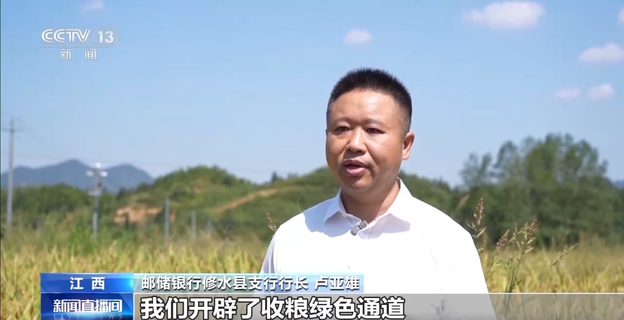 郵儲(chǔ)銀行修水縣支行行長 盧亞雄:我們開辟了收糧綠色通道,全力保障了秋糧貸款及時(shí)足額發(fā)放。截至目前,發(fā)放秋糧行業(yè)貸款超2億元。