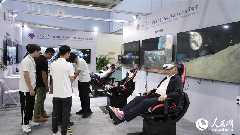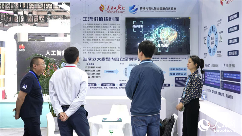 人民日報社傳播內(nèi)容認(rèn)知全國重點實驗室展區(qū)吸引眾多觀眾駐足了解。人民網(wǎng)記者 吳茜薇攝