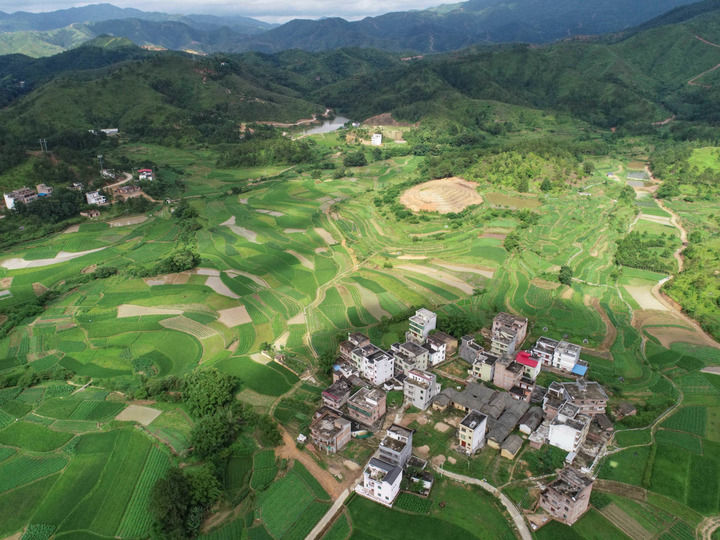 江西省贛州市于都縣段屋鄉(xiāng)寒信村景色(2019年6月13日攝,無人機(jī)照片)。新華社記者 周密 攝