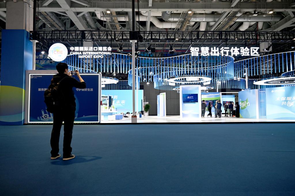 2024年11月5日,參觀者在第七屆進(jìn)博會(huì)汽車展區(qū)智慧出行體驗(yàn)區(qū)拍照。新華社發(fā)(陳浩明 攝)