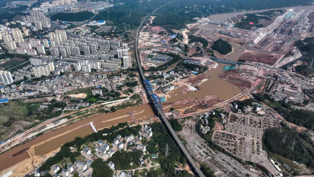 這是廣西平陸運(yùn)河青年樞紐與市區(qū)銜接處的建設(shè)工地(2024年10月11日攝,無(wú)人機(jī)照片)。新華社記者 張愛(ài)林 攝