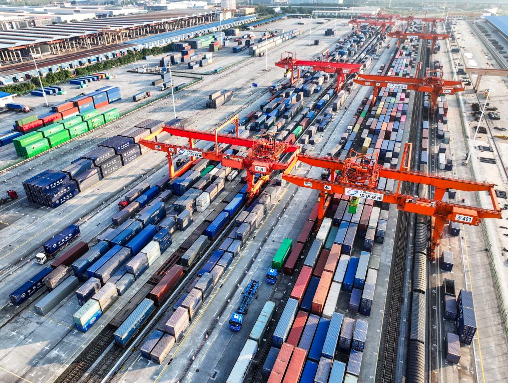 這是成都國(guó)際鐵路港(2024年6月13日攝,無(wú)人機(jī)照片)。新華社記者 唐文豪 攝