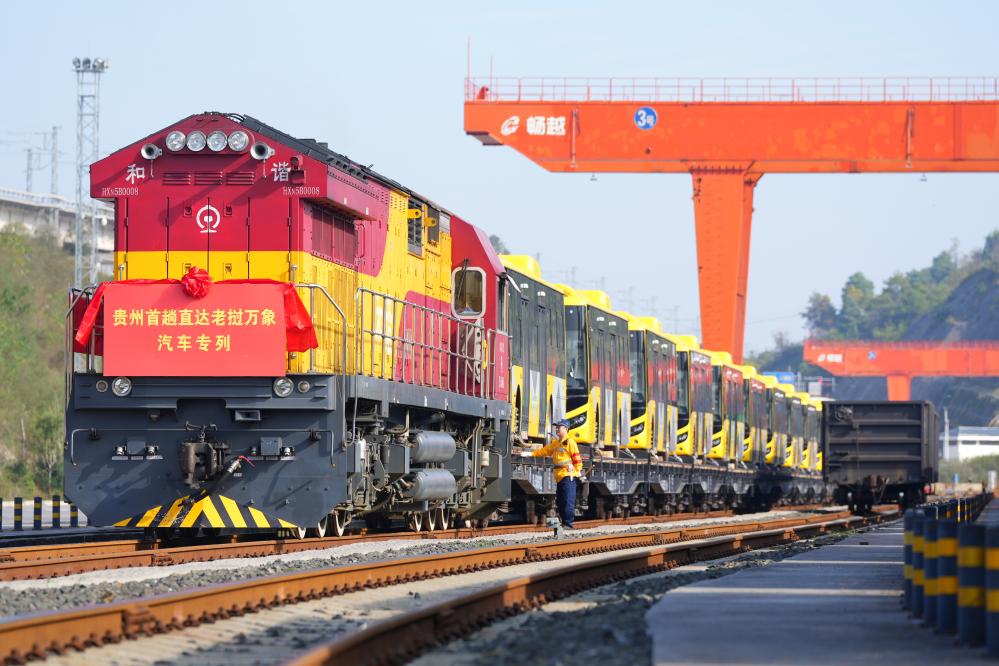 10月底,55臺(tái)“貴州造”新能源客車搭乘西部陸海新通道國(guó)際鐵路聯(lián)運(yùn)班列,從貴陽(yáng)國(guó)際陸港都拉營(yíng)站開(kāi)出,不久后抵達(dá)老撾萬(wàn)象。