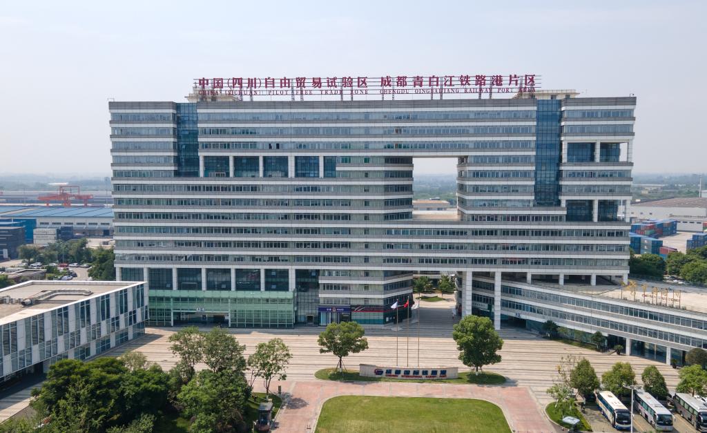 中國(guó)(四川)自由貿(mào)易試驗(yàn)區(qū)成都青白江鐵路港片區(qū)(2024年6月13日攝,無(wú)人機(jī)照片)。新華社記者 唐文豪 攝