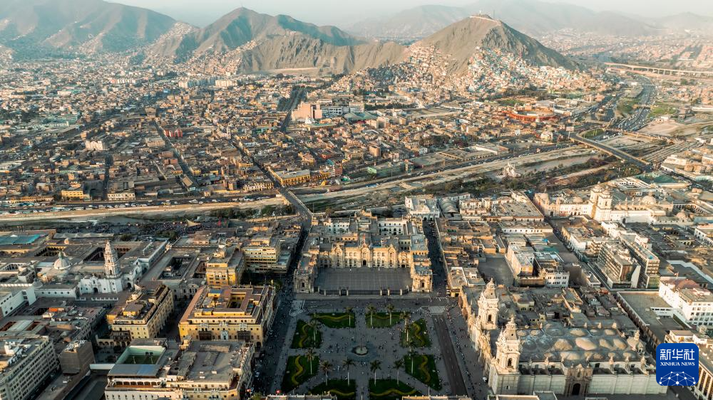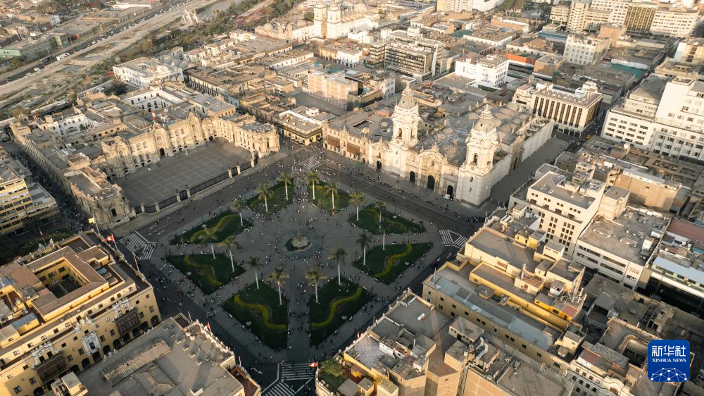 這是10月13日拍攝的秘魯首都利馬老城的阿馬斯廣場(無人機(jī)照片)。