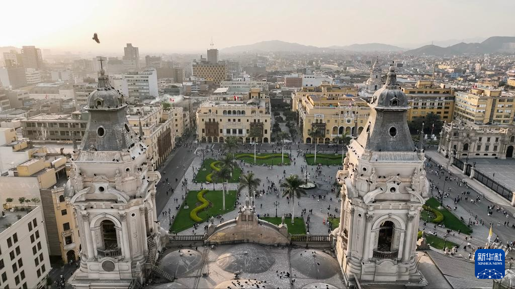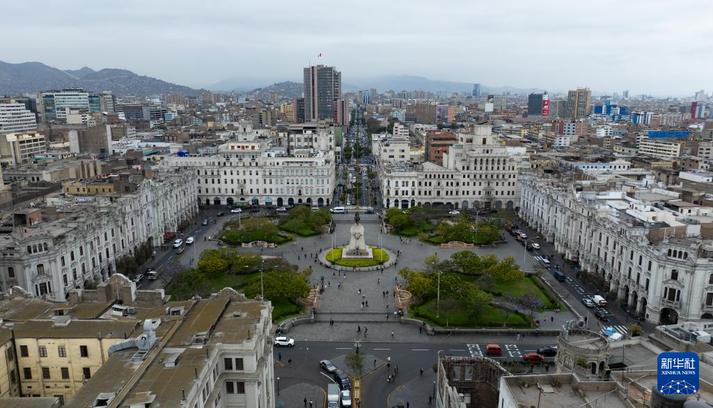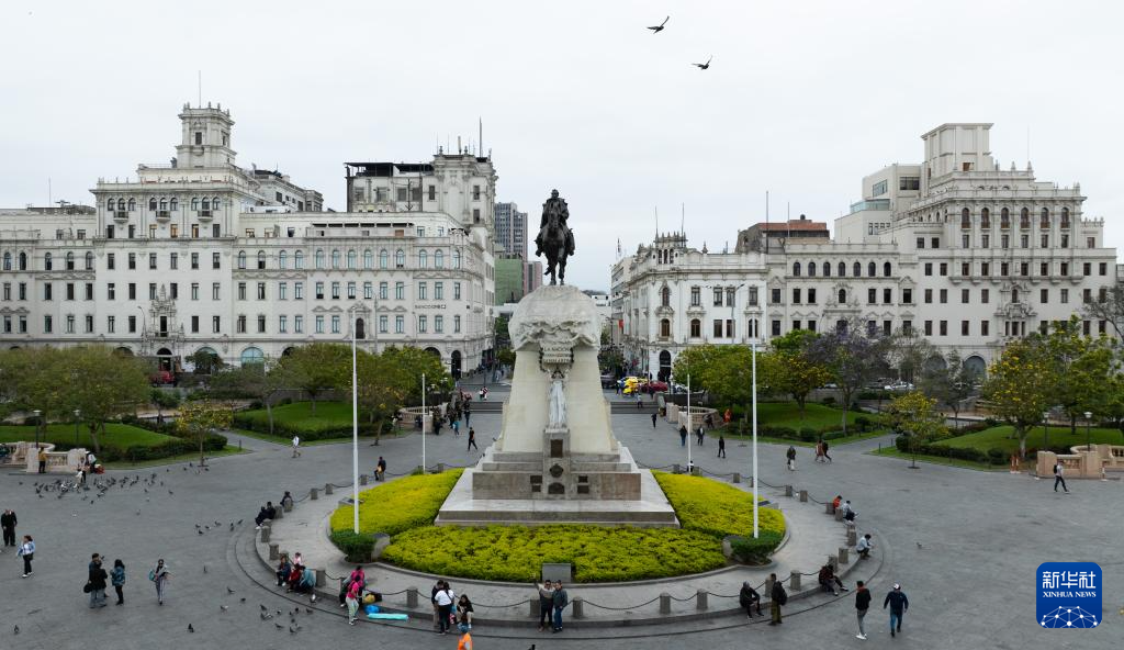 這是11月7日拍攝的秘魯首都利馬老城的圣馬丁廣場(無人機(jī)照片)。