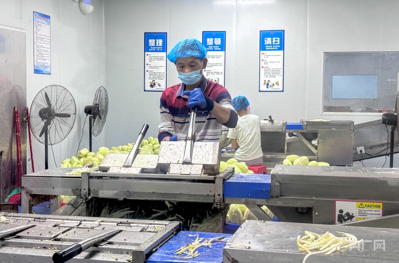 村民在企業(yè)從事木瓜絲加工工作(央廣網(wǎng)記者 梁瑜琳 攝)