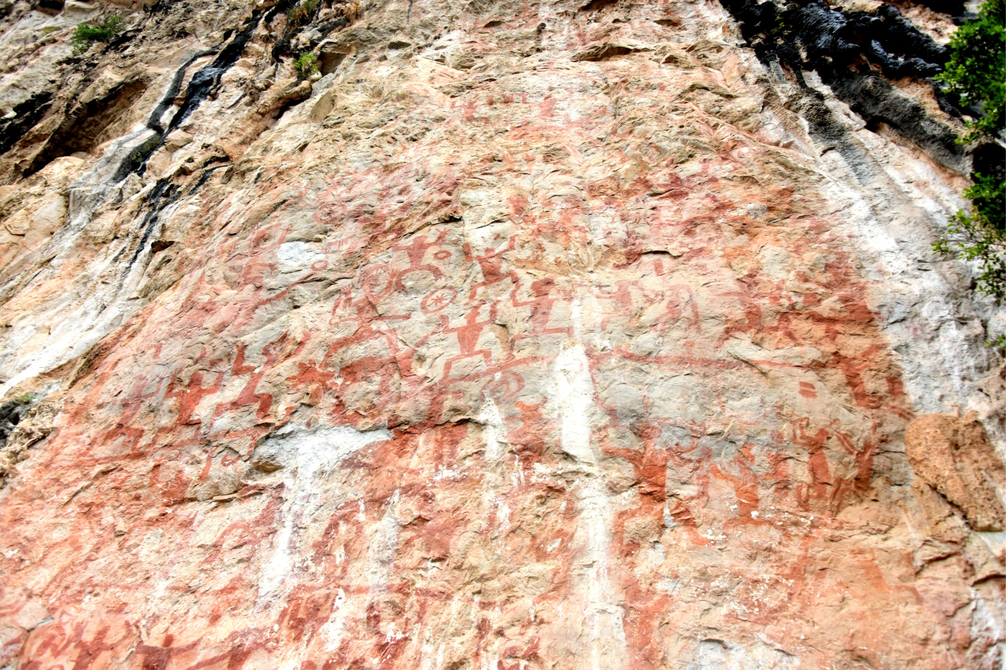 花山,坐落于崇左市寧明縣城西北約25公里的明江河畔,以其古老神奇的巖畫而聞名海內(nèi)外?;ㄉ綆r畫距今已有2000多年的歷史,刻著人、獸、銅鼓、刀劍、羊角鈕鐘等造型各異的赭紅色圖像,記錄著壯族先民古駱越人的生活、生產(chǎn)和宗教信仰,為中國首個巖畫類世界文化遺產(chǎn)。