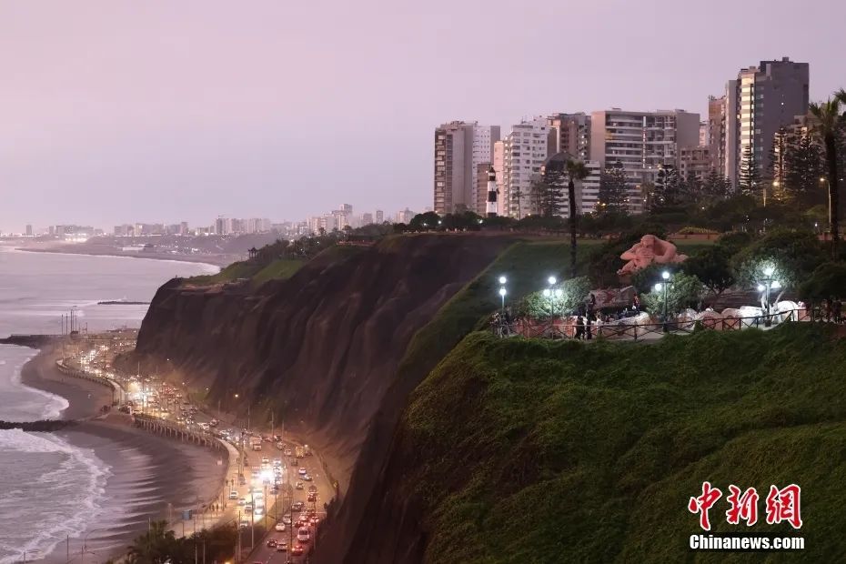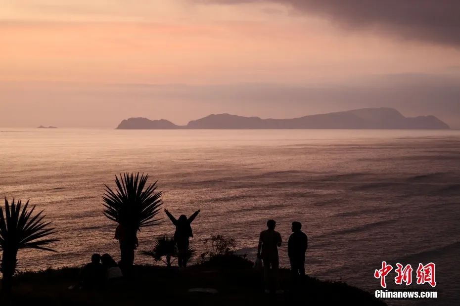 當?shù)貢r間11月12日,秘魯首都利馬,日落時分的海岸線美景。中新社記者 盛佳鵬 攝