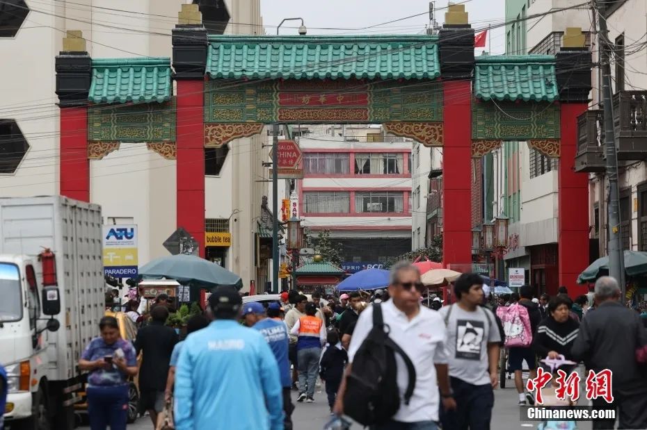 當?shù)貢r間11月12日,秘魯首都利馬,唐人街“中華坊”牌樓。中新社記者 盛佳鵬 攝