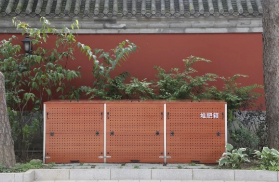游客漫步箭亭廣場(chǎng)時(shí),會(huì)發(fā)現(xiàn)花壇邊的堆肥箱——故宮內(nèi)外共設(shè)置了40個(gè)此類堆肥箱,截至2023年底,已累計(jì)消納54.5噸園林綠化垃圾,生成19.9噸堆肥改良劑。這些改良劑被用于園內(nèi)植物的土壤改良,實(shí)現(xiàn)資源的自循環(huán)利用。