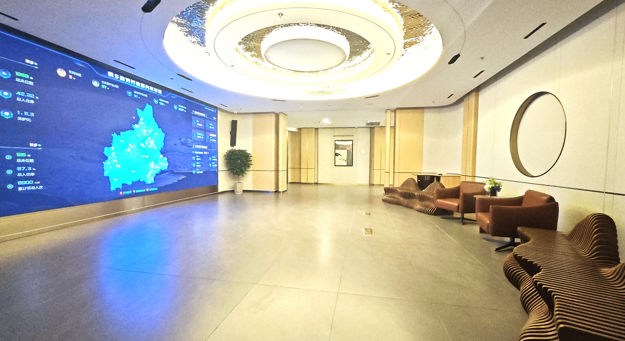 進(jìn)入中心,映入眼簾的是占據(jù)整面墻的智能大屏,中心內(nèi)所有公共區(qū)域的實(shí)時(shí)場景一覽無余。