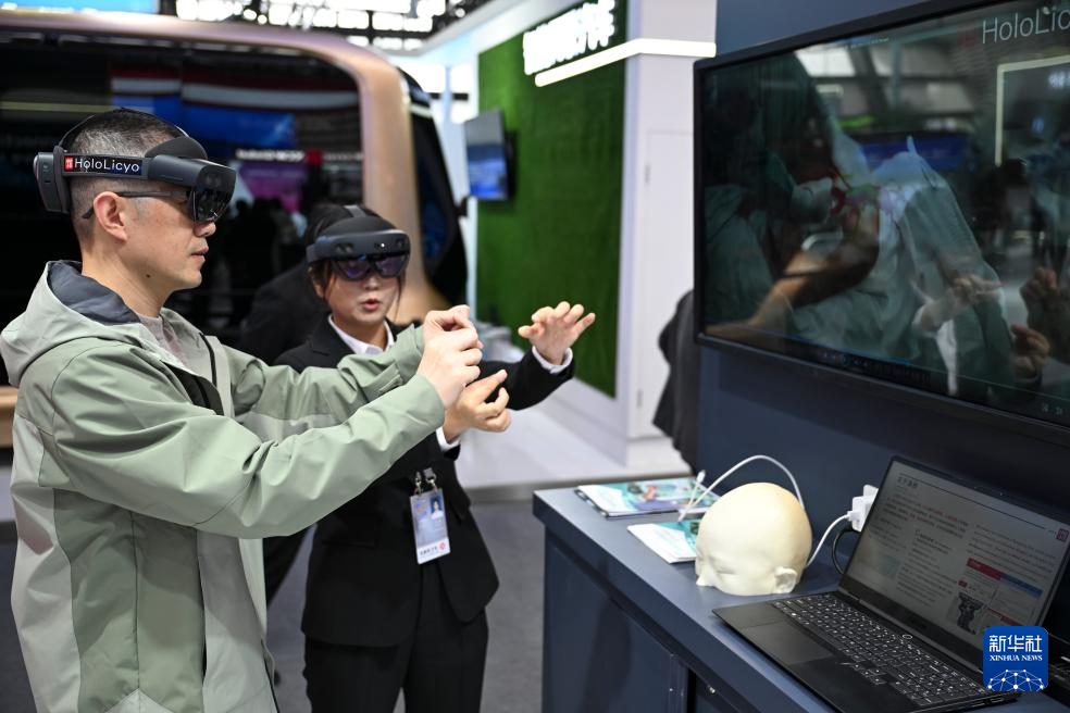 11月19日,在2024年世界互聯(lián)網(wǎng)大會(huì)“互聯(lián)網(wǎng)之光”博覽會(huì)上,參觀者體驗(yàn)一款全息智能醫(yī)學(xué)影像系統(tǒng)做手術(shù)的過程。