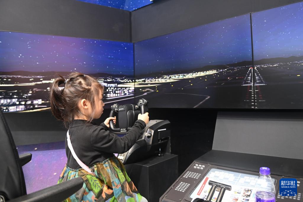 11月19日,在2024年世界互聯(lián)網(wǎng)大會(huì)“互聯(lián)網(wǎng)之光”博覽會(huì)上,小朋友在數(shù)字飛行模擬艙體驗(yàn)操作飛機(jī)。