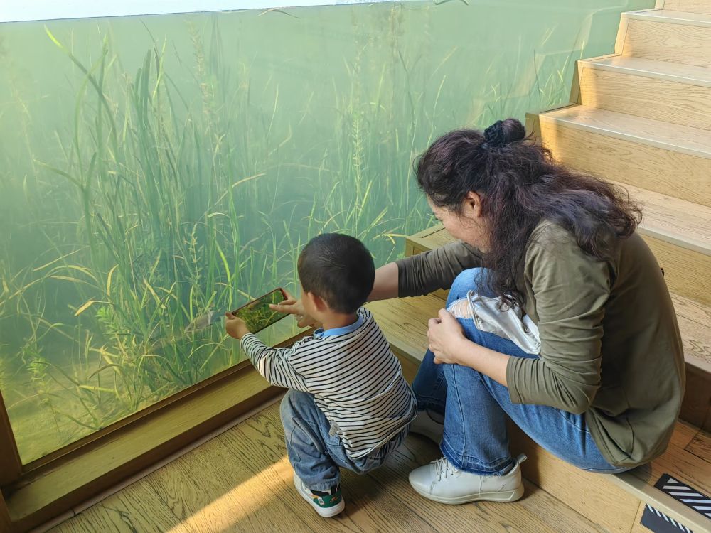 興隆湖畔的湖畔書店,人們透過(guò)書店內(nèi)的玻璃幕墻,可以看到湖底的景象。新華社記者董小紅 攝