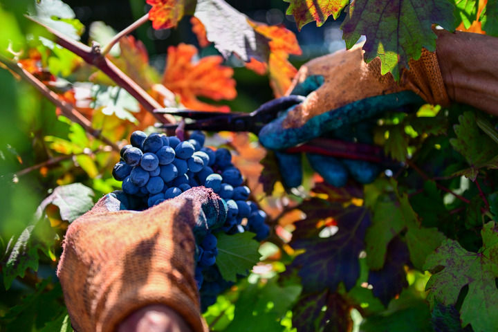 這是2024年9月9日在新疆昌吉市三工鎮(zhèn)二工村釀酒葡萄種植可視化管理示范園拍攝的葡萄。新華社記者 丁磊 攝