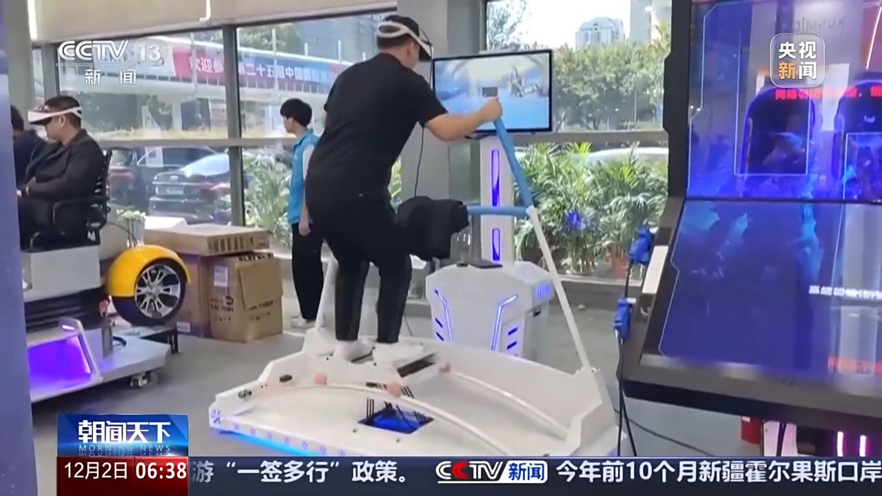 某數(shù)字機(jī)器企業(yè)負(fù)責(zé)人 孫莉:通過身體的左右擺動(dòng),戴著VR眼鏡頭盔,就可以實(shí)時(shí)體驗(yàn)極限的滑雪運(yùn)動(dòng)。銷量也是以15%的速度在增長。