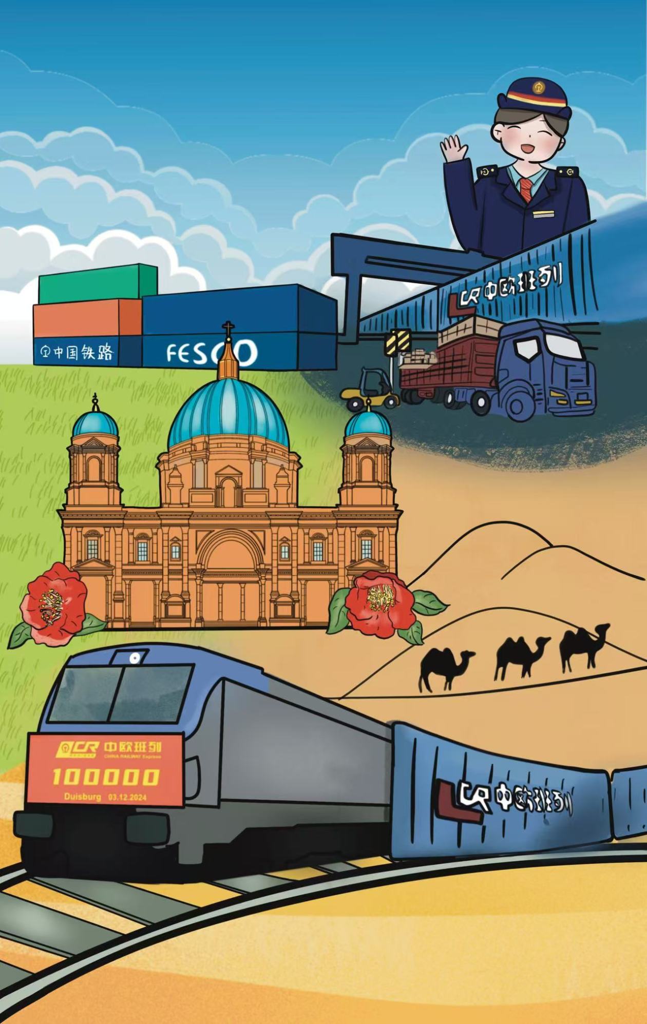 當(dāng)?shù)貢r間12月3日9時10分,從中國重慶團結(jié)村中心站開出的第10萬列中歐班列X8083次順利抵達德國杜伊斯堡。截至目前,中歐班列已通達歐洲25個國家227個城市,連接11個亞洲國家超過100個城市,服務(wù)網(wǎng)絡(luò)基本覆蓋亞歐大陸全境。萬里鐵道蜿蜒伸展,“鋼鐵駝隊”通達八方,讓古老的絲綢之路煥發(fā)新的生機與活力。