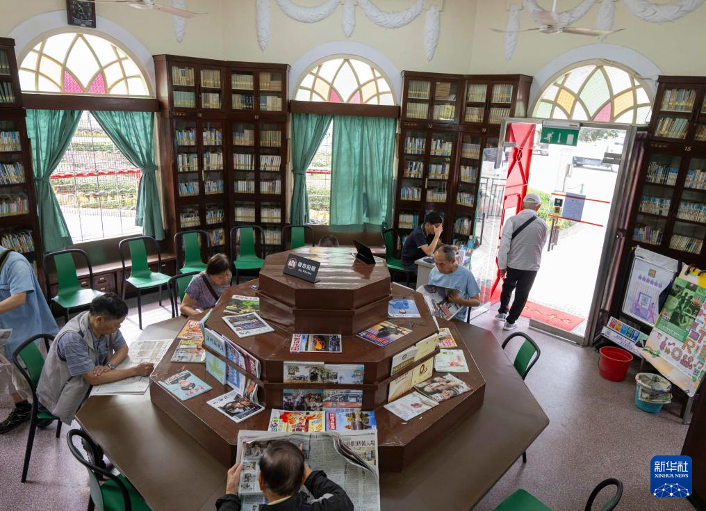 人們在八角亭圖書館閱讀報章(10月30日攝)。新華社發(fā)(張金加攝)