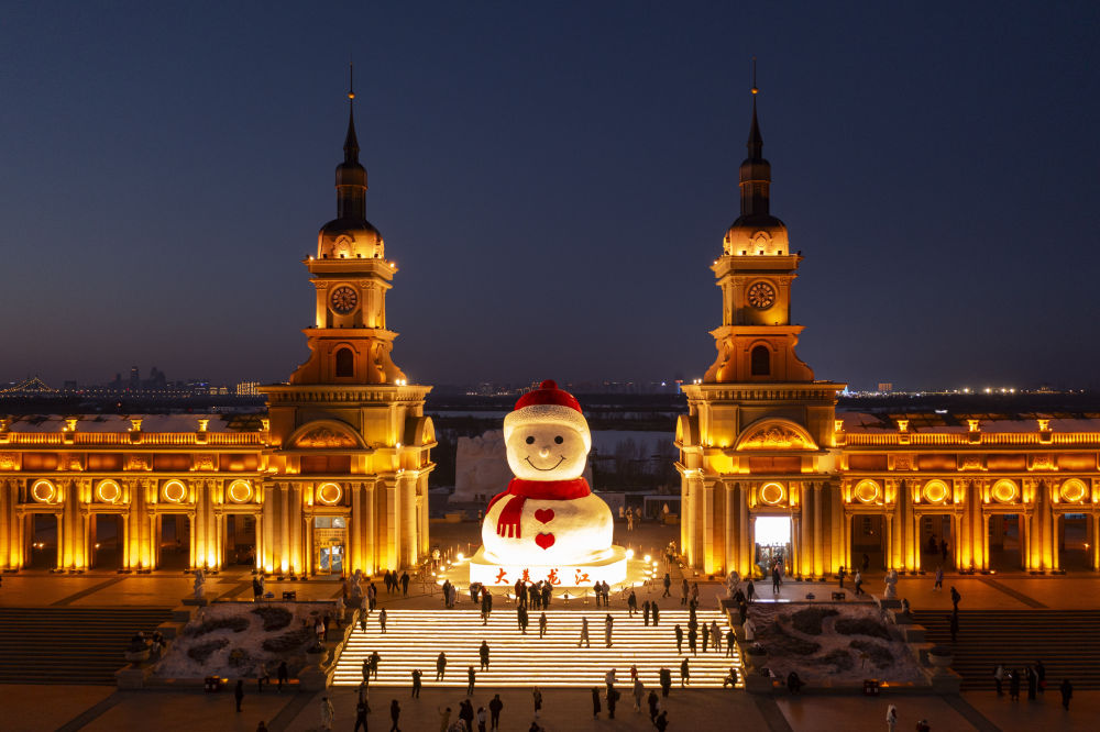 新年伊始,“冰城”哈爾濱正值冰雪旅游旺季,當(dāng)?shù)卦谑袇^(qū)打造了多個(gè)雪人景觀供游客參觀游玩。這些造型各異的雪人仿佛是“冰城”的冬日使者,迎接來自世界各地的游客,展現(xiàn)冰雪文化的魅力。