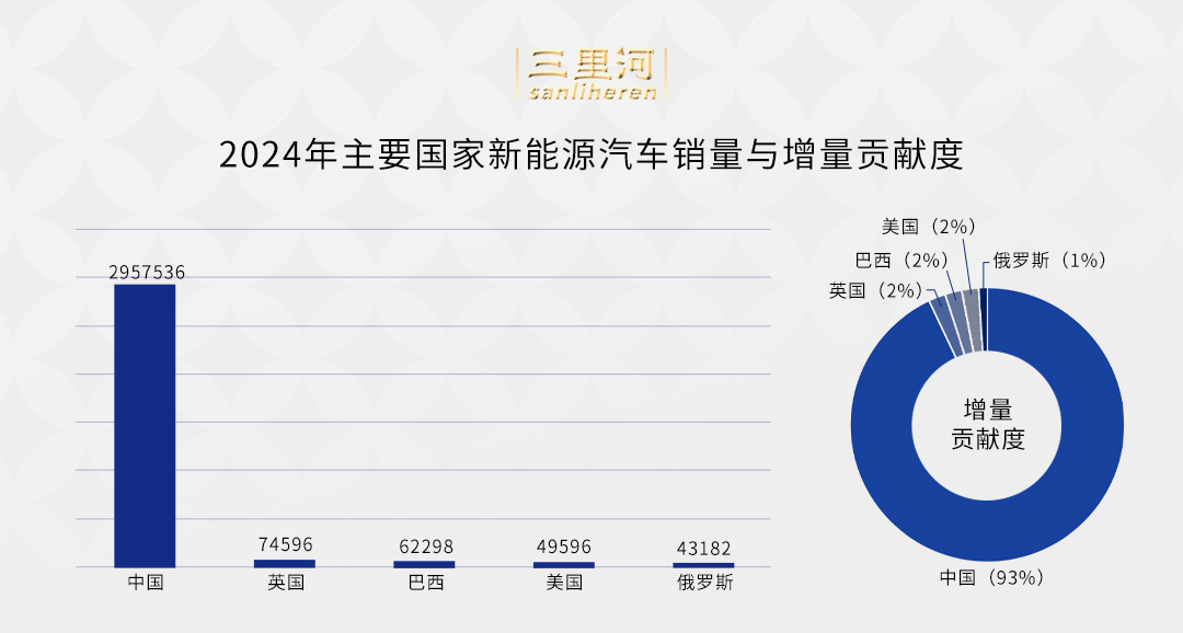 “2024年中國(guó)新能源乘用車(chē)銷(xiāo)量對(duì)世界的增量貢獻(xiàn)度是93%,英國(guó)、巴西、美國(guó)都是2%,俄羅斯1%,所以整個(gè)世界新能源車(chē)總體的增量貢獻(xiàn)基本就是在中國(guó)?!?/p>