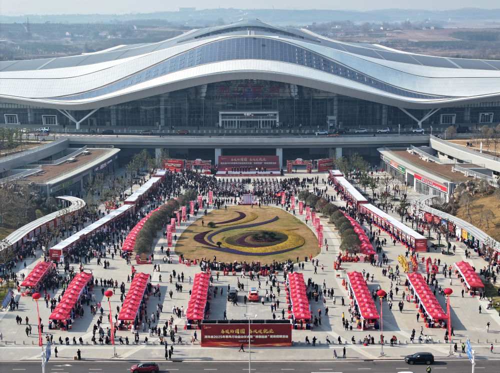 1月12日下午,湖北荊門西站東廣場前,湖北省2025年春風(fēng)行動(dòng)啟動(dòng)儀式暨“接您回家”現(xiàn)場招聘活動(dòng)舉行。(受訪者供圖)