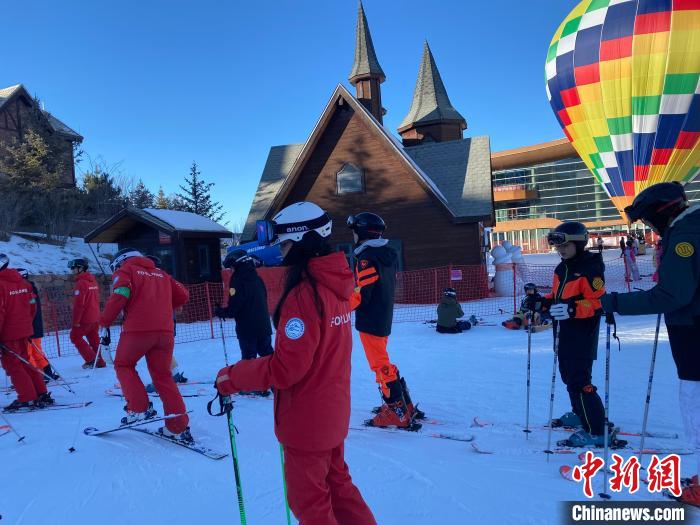 正值2024至2025雪季期間,當日下午,一行人來到富龍滑雪場體驗滑雪??紤]多數(shù)人是“首滑”,當?shù)匕才帕藢I(yè)教練教授雙板滑雪入門知識。