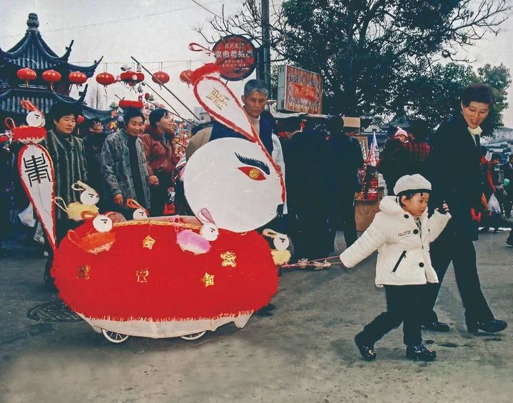 上世紀90年代孩子拉著兔子花燈歡快奔走 圖源:南京秦淮區(qū)文化館
