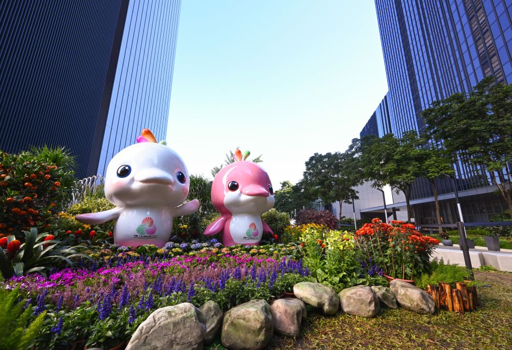 在金鐘,2米多高的第十五屆全國運動會吉祥物“喜洋洋”“樂融融”從除夕開始現(xiàn)身添馬公園,與大家共賀新春,喜迎全運。