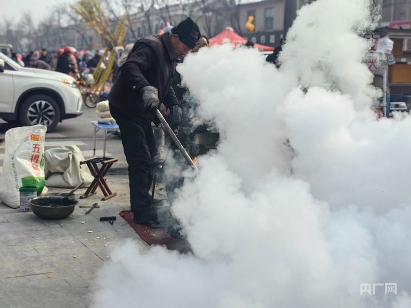 熱氣騰騰的爆米花出鍋(央廣網(wǎng)發(fā) 孟凡庚 攝)
