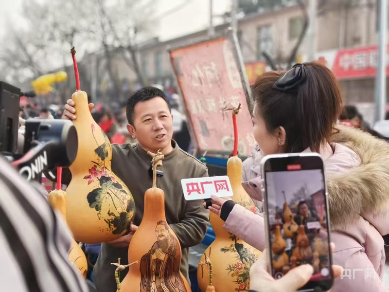 在旁邊的友誼葫蘆攤位前,形態(tài)各異、制作精致的葫蘆制品吸引了不少村民駐足觀看。山東省級非遺項目章丘葫蘆雕刻代表性傳承人馬友誼表示,這些葫蘆都是手工制作,每一個都有其獨特的寓意和故事,有些還登上國際舞臺進行展示。