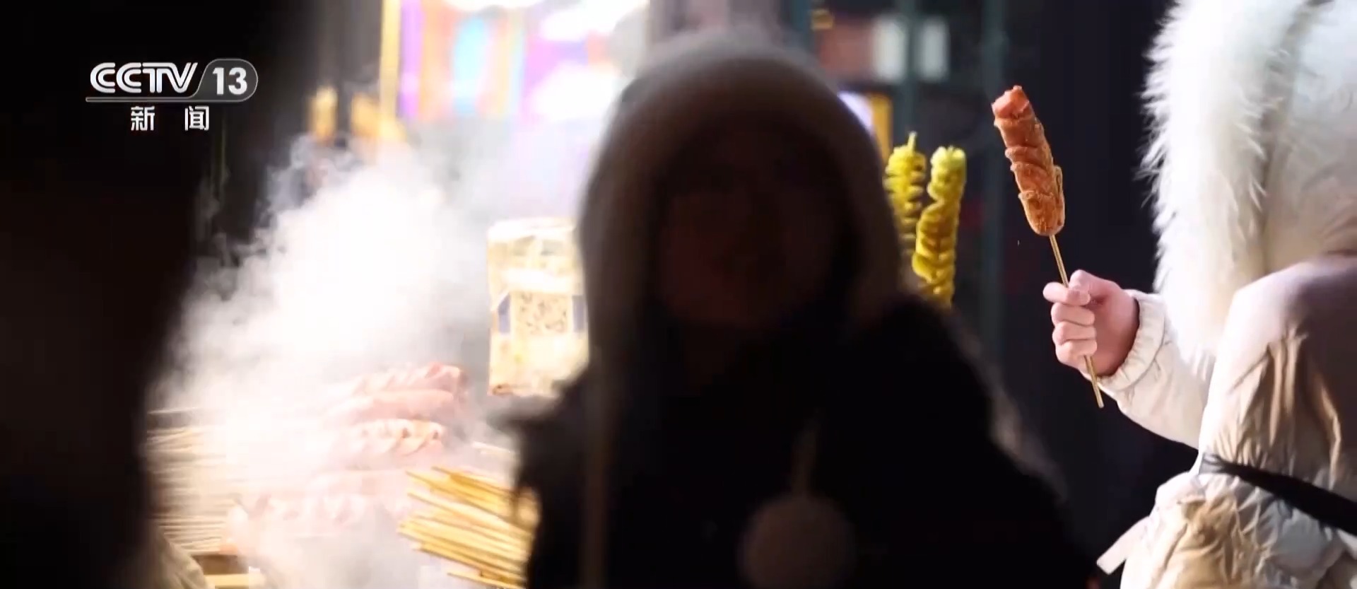 在前面不遠處,還有紅腸飄來的陣陣香氣。紅腸作為哈爾濱特色美食,有著百年歷史,是游客必嘗的美味。美食和冰雪旅游在這里相互交融,為哈爾濱的夜晚增添了別樣的煙火氣。