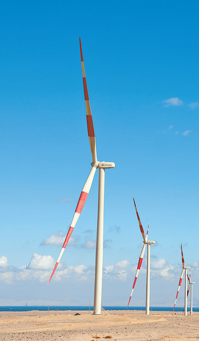 中國電建埃及500兆瓦蘇伊士灣風(fēng)電項(xiàng)目現(xiàn)場(chǎng)。