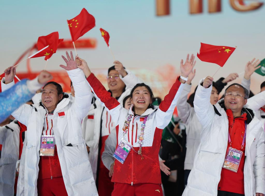 2月14日,第九屆亞洲冬季運(yùn)動會閉幕式在哈爾濱舉行,這是各體育代表團(tuán)入場環(huán)節(jié)。新華社記者 許雅楠 攝