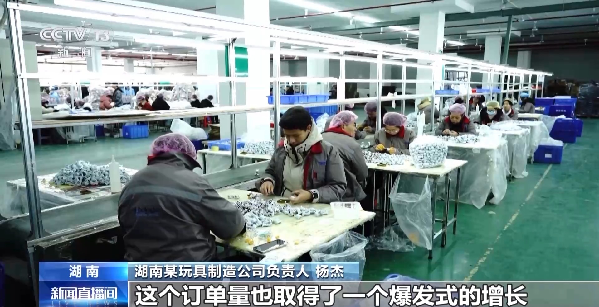 湖南某玩具制造公司負(fù)責(zé)人 楊杰:《哪吒2》爆火之后,我們企業(yè)的訂單量也取得了爆發(fā)式的增長,也為我們后面的發(fā)展提供了很多方向?,F(xiàn)在國內(nèi)的訂單,我們4月份都將近排滿了。然后我們現(xiàn)在又接到國外,像北美、俄羅斯、東南亞激增的訂單量需求。