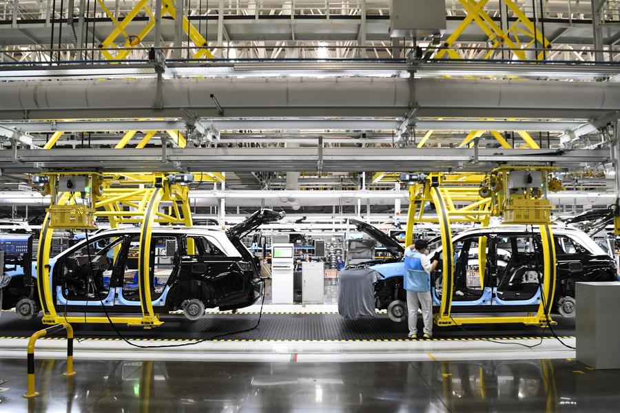 這是在位于重慶市兩江新區(qū)的賽力斯汽車超級(jí)工廠智能化生產(chǎn)作業(yè)現(xiàn)場(2024年6月7日攝)。新華社記者 王全超 攝
