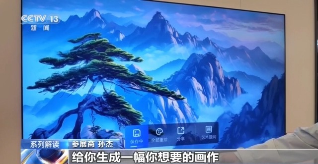 參展商 孫杰:只要說出你想要的畫面內容,它就會很短的時間給你生出一幅你想要的畫作。既可以作為自己的畫作在電視上欣賞,也可以通過微信掃碼復制到電腦手機上作為桌面。
