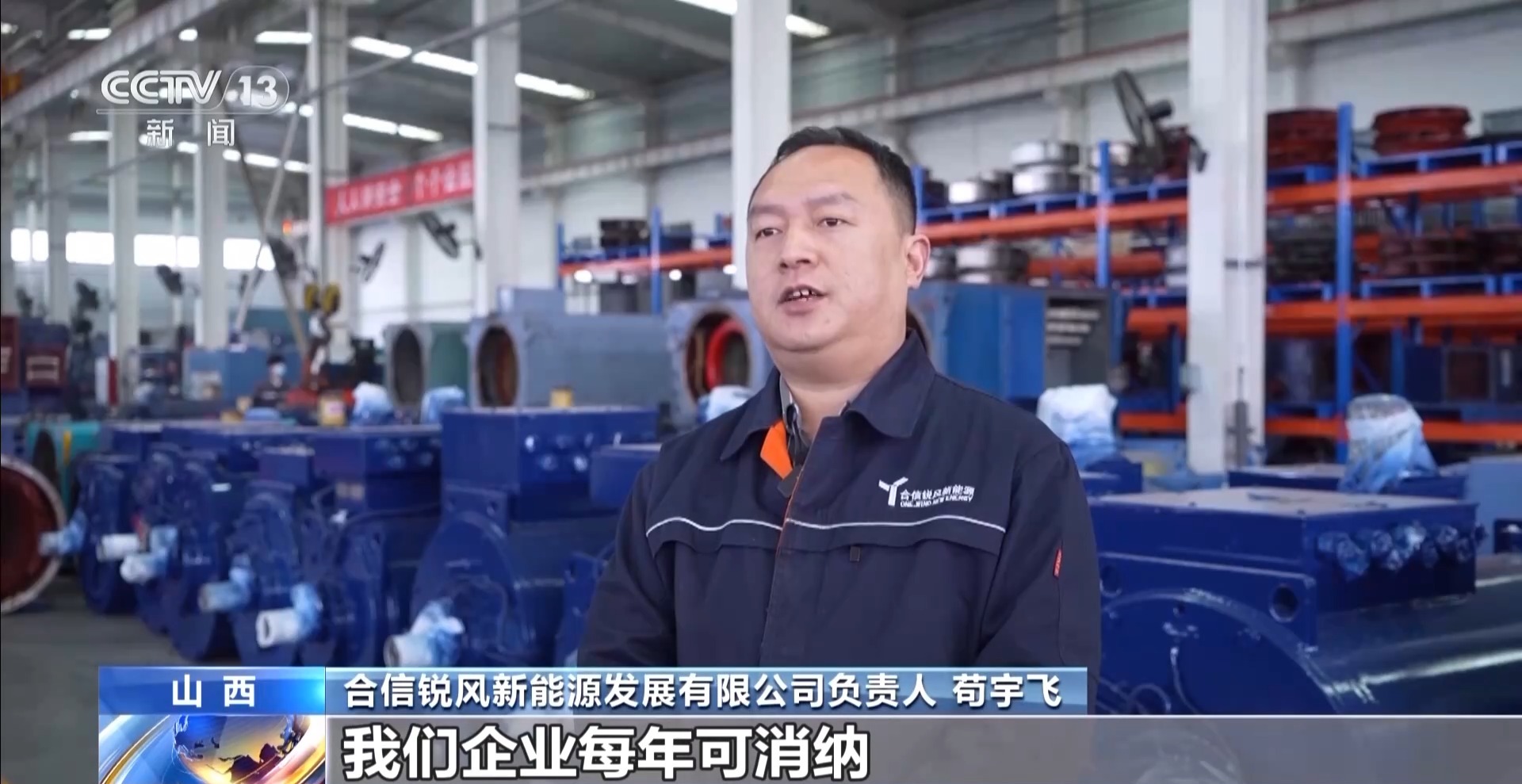 合信銳風(fēng)新能源發(fā)展有限公司負(fù)責(zé)人 茍宇飛:我們企業(yè)每年可消納退役各類型風(fēng)力發(fā)電機(jī)500余臺(tái),通過風(fēng)力發(fā)電機(jī)的回收再制造利用,每年可節(jié)約3000余噸鋼材,400余噸銅材,每年可創(chuàng)造約18億度的綠色電能,可減少二氧化碳排放100余萬噸。