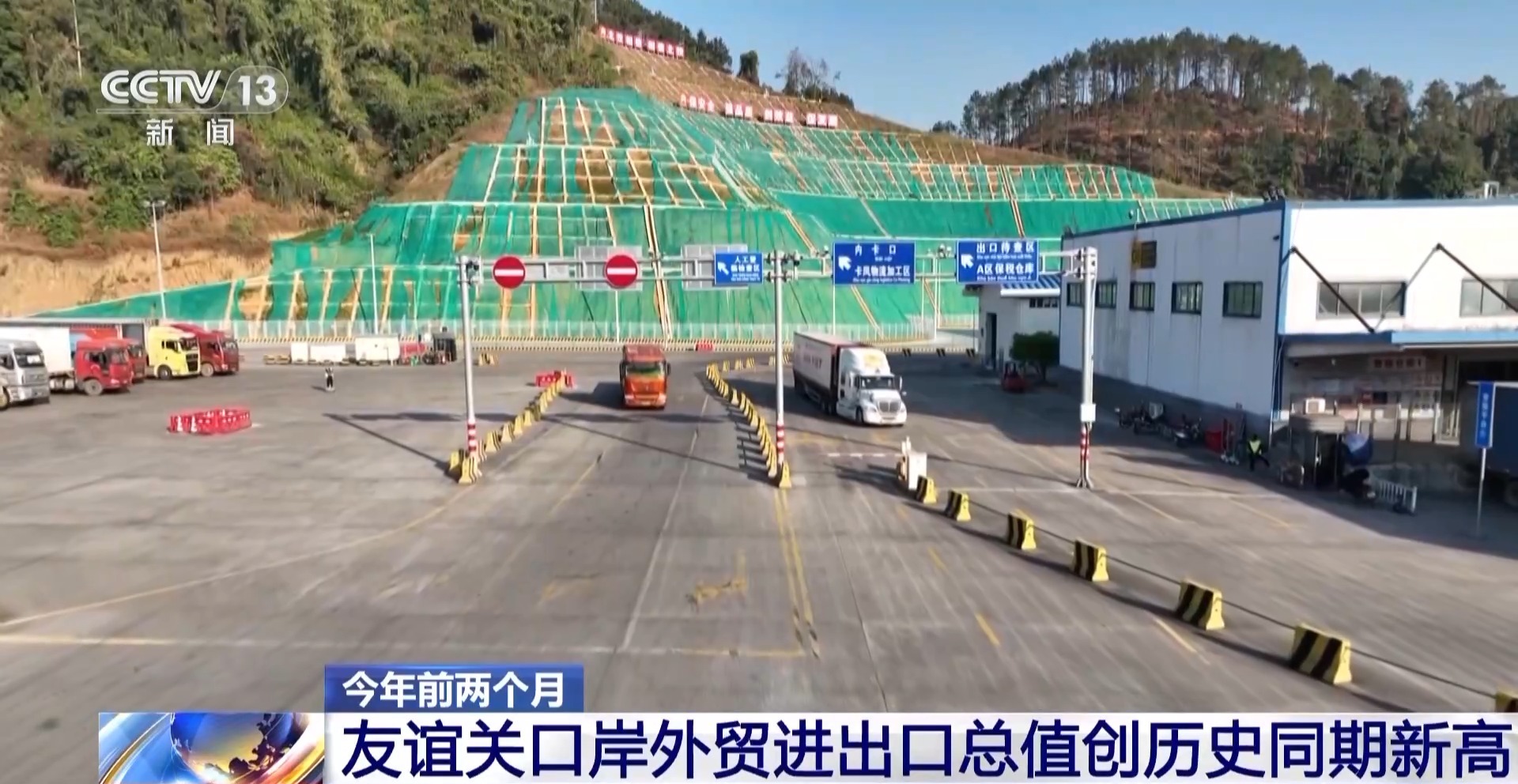 據(jù)友誼關海關統(tǒng)計,今年前兩個月,經友誼關口岸進出口貨值728.9億元,同比增長10.9%,創(chuàng)歷史新高;進出口貨運量85萬噸,同比增長38.3%。進出境車輛11.4萬輛,同比增長10.2%。