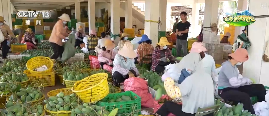 在海南南部地區(qū),那里的芒果正是豐產(chǎn)黃金期,芒果園里一派繁忙景象。