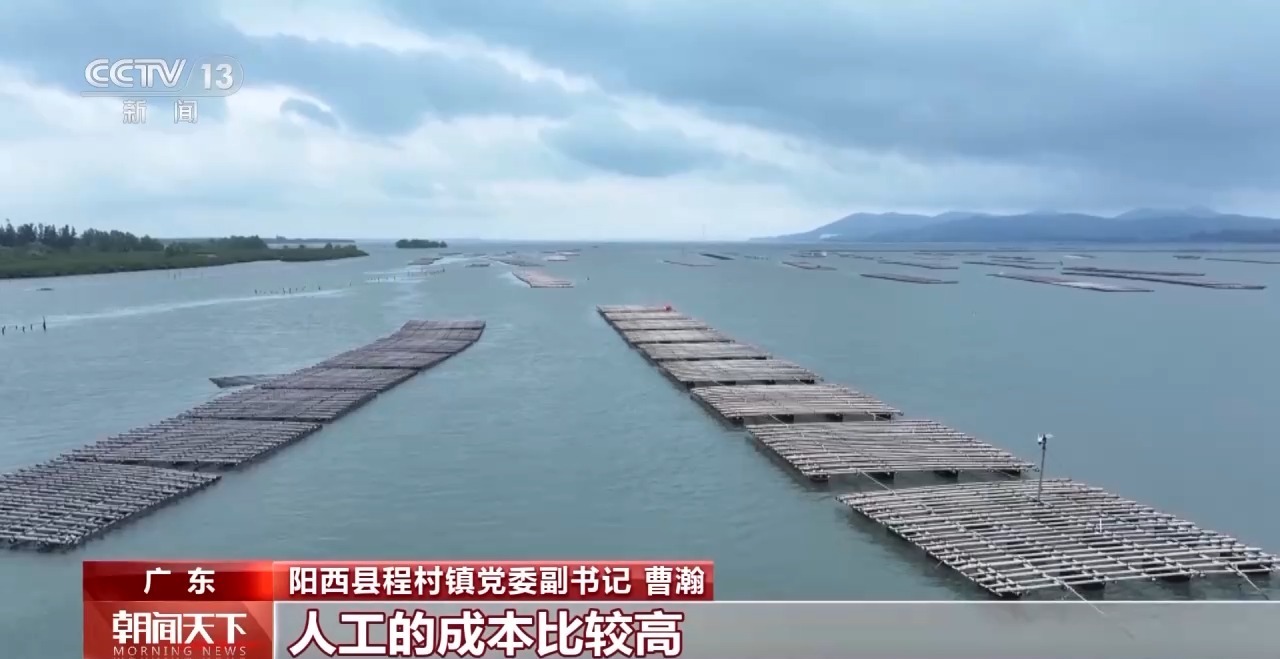 陽西縣程村鎮(zhèn)黨委副書記 曹瀚:以前的立柱式養(yǎng)殖必須要有水泥樁,還要打樁進(jìn)去,人工的成本比較高。延繩吊養(yǎng)生蠔的時(shí)候,我們能夠及時(shí)根據(jù)海水咸濕度情況進(jìn)行轉(zhuǎn)移,有利于蠔盡快長(zhǎng)大。