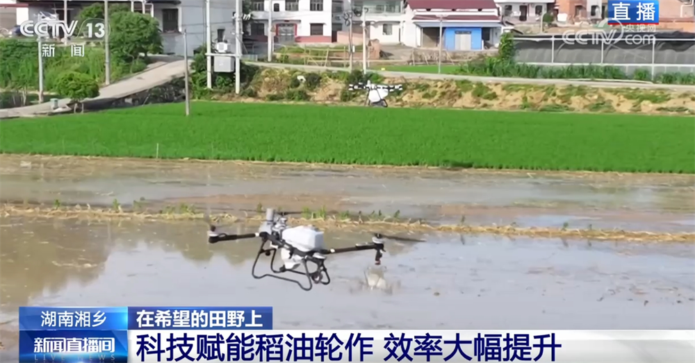 在這個階段,還有一件非常重要的工作就是施肥。眼下,施肥已經(jīng)很少依靠人工了?,F(xiàn)場,大型的農(nóng)業(yè)無人機正在作業(yè),肥料均勻灑在田里。無人機還能做到自動避障、自動調(diào)節(jié)噴灑量,配備光譜儀還可以檢測莊稼的長勢,作業(yè)1畝地只需要不到20秒。