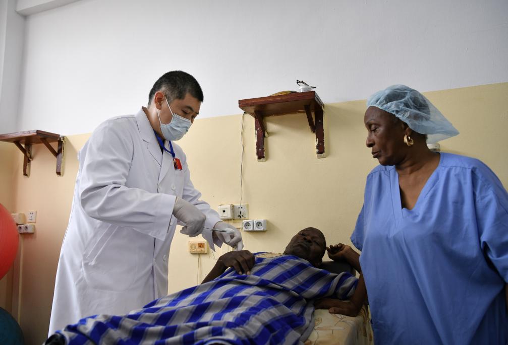 骨科手術(shù)室里,中國(guó)專家手把手地教當(dāng)?shù)蒯t(yī)生操作關(guān)節(jié)置換用手術(shù)器械;針灸科診室內(nèi),曾留學(xué)上海和廣州的法圖瑪塔·達(dá)博主任與中方醫(yī)療隊(duì)員探討穴位配伍;重癥監(jiān)護(hù)室中,兩國(guó)醫(yī)生徹夜聯(lián)手搶救一名車禍導(dǎo)致的多臟器損傷者。