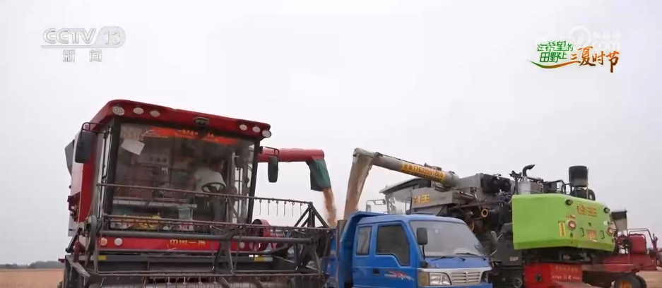 在河南南陽鄧州構(gòu)林鎮(zhèn)這處麥田,金黃的麥浪層層鋪開,麥穗 在陽光下熠熠生輝。4臺聯(lián)合收割機開足馬力穿梭在麥田間,伴隨著機器的轟鳴聲,成熟的小麥被快速收割、脫粒,金黃的麥粒從收割機的出糧口傾瀉而出,裝入一旁的運輸車輛。